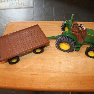 Produced by Ertl,, tractor with wagon set is tough enough for indoor or outdoor play. Other features include a removable wagon with opening end gate, steerable front axle activated by the steering wheel and a die-cast hood. Item measures approximately 44cm x 12.5cm x 13cm.