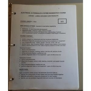 John Deere Training Center Binder with service updates on lawn and garden equipment etc. from 1991 There is some writing inside. These are original and not reprints, came from a closed dealer.