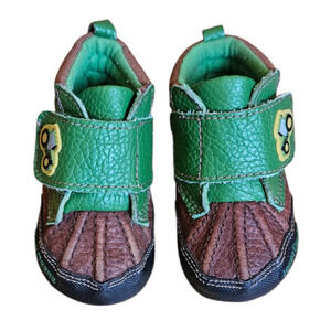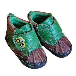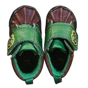 John Deere Upper Leather Green Brown Baby Booties Size 3