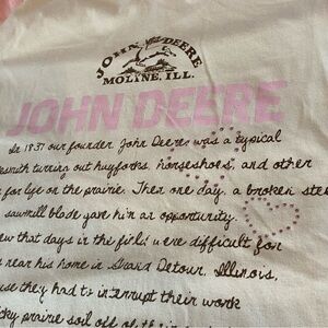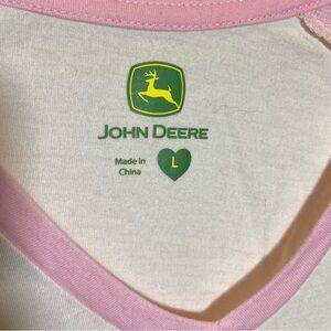 John Deere women's size Large graphic t-shirt pink white lightweight