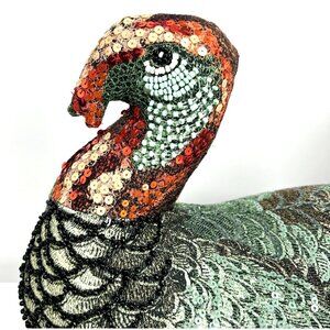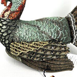 John Derian Beaded Sequin Pillow Fall Turkey Shaped Thanksgiving 15 x 17 x 16"