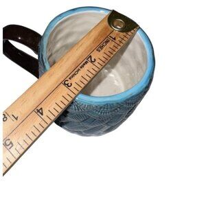 This mug from John Derian offers an elegant stoneware design, featuring a blue feather-like pattern with brown handles. Dishwasher and microwave safe, these mug are practical and stylish for daily use.