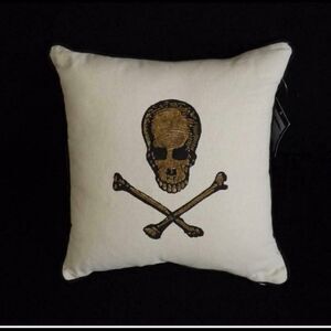 John Derian Threshold 12” Beads and Bones Skull and Crossbones Throw Pil…