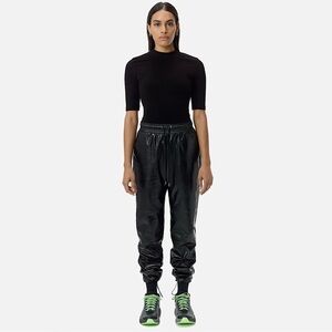 Ultralight track pants in an oversized fit. Crafted from 100% Italian leather. Features back welt pockets, articulated knees, drawstring waistband and adjustable cuff for versatile styling.