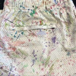 Vibrant shorts with a colorful splatter print. Perfect for casual wear.