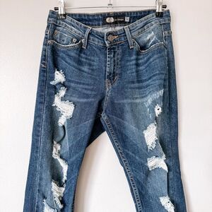 John Eshaya Distressed Skinny Crop Medium Wash Jean Size 6