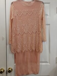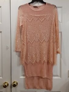 John Fashion Boho Knitted Pink Lace Dress Size XL