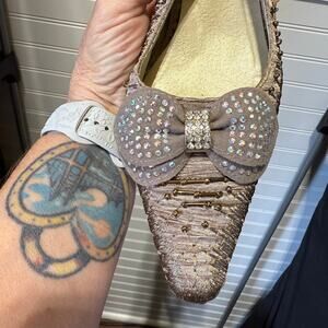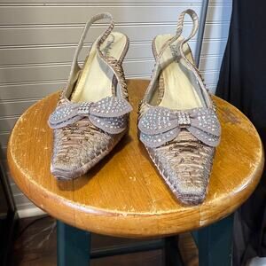 John Fashion Taupe Slingback Textured With Bow Detail Heels Size 8