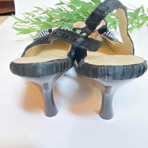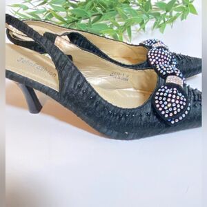 John Fashion Women's Black Beaded Slingback Pointed Toe Kitten Heel Size 9