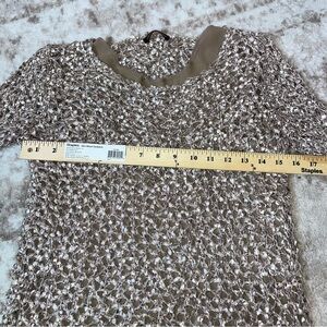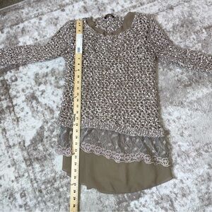 John Fashion brand beige layered open knit topo blouse flowy bottom SZ SM