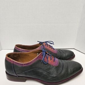 Distinctive leather oxfords with a blend of black and purple. Perfect for a bold statement. Crafted for style and comfort.