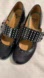 Stylish John Fluevog shoes with black and white polka dot design. Unique and eye-catching, almost new, great condition, size 10, made in Portugal, leather upper, size 10, maryjanes, button strap.