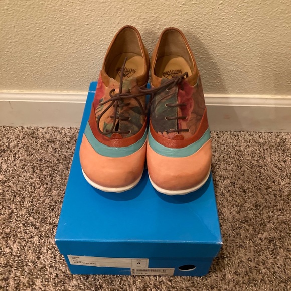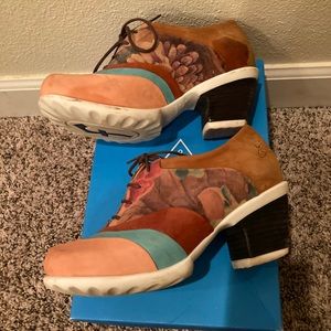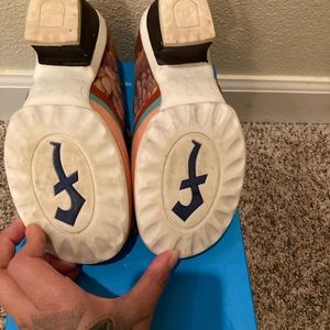 Floral John Fluevog Vow. So lovely! A few scuffs here and there, nothing that can’t be cleaned. In great condition!
