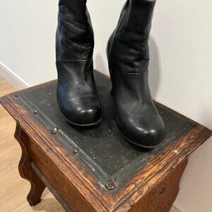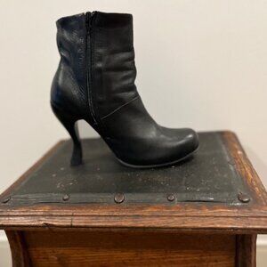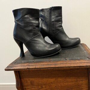 A versatile bootie that pairs beautifully with dresses, jeans, or tailored pants. Rare and hard-to-find Fluevog style! Really comfortable for being such a high heel.