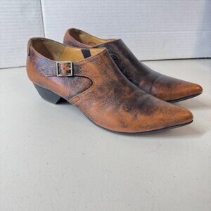 John Fluevog Justine Brown Pointy Toed Low Heel Leather Shoes Size 6