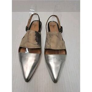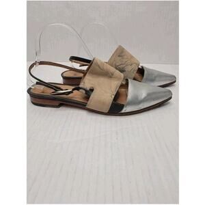 John Fluevog Marlene Slingback Flats Sz 10 Pointed Toe Silver Tan Floral