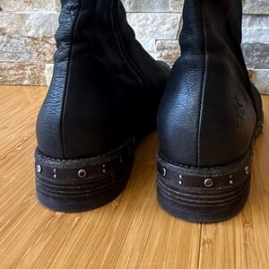 John Fluevog Nicola Black Leather Mid-Shin Boots — Size 9