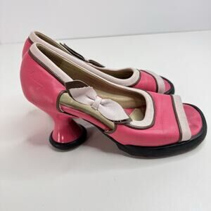 John Fluevog Pin Up Doll Barbie 60s 50s Bebe Peep Toe Flared Heel Pumps Sz 7