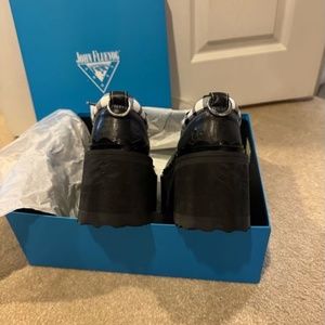 Reposhing this item I purchased from @gracecollins447, because unfortunately these were too small for me. I am between a 7 and a 7.5; the comments on the Fluevog sites said to size down, so I thought a 7 should be fine, but they are too short. More for a person who is a true 7, and not verging on a 7.5. Also: Although the previous seller pictured the item with the box, **PLEASE NOTE that they arrived with no box, so I cannot provide one***, despite the photos (which are from the original seller).
