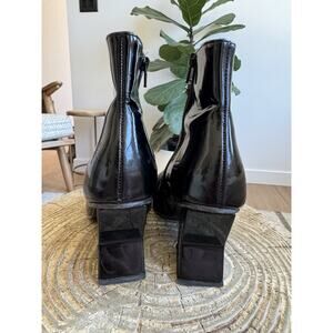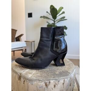 John Fluevog Slash Angular Ankle Bootie Black Leather Women’s 6.5 Point Toe Mesh