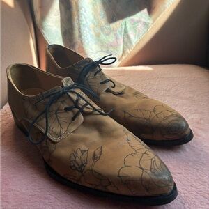 John Fluevog Tan Floral Men's Oxfords Super Stylish