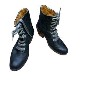 Women’s vintage black leather lace up granny boots