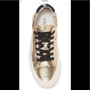 Sparkly sequins embellish this contemporary fashion sneaker that's sure to catch the light with every step you take. Lace-up closure Cushioned insole Round toe with bumper Back pull-tab White sole Synthetic upper/leather lining/rubber sole Imported