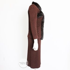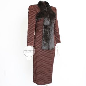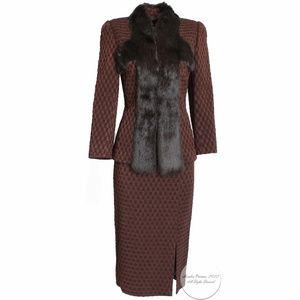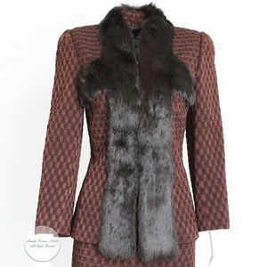 John Galliano Suit 2pc Set Rex Rabbit Trim Jacket & Skirt Silk & Wool Knit Sz 6