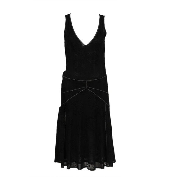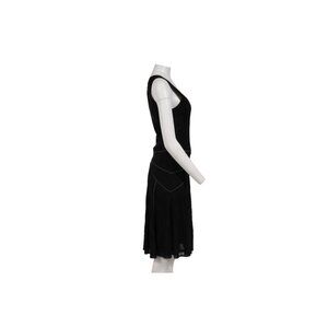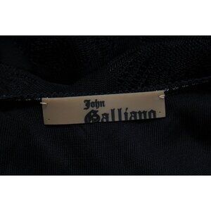 John Galliano Vintage Contrast Stitching Knee Length Dress Medium Black Viscose