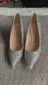 These are brand new John Galliano glitter pumps! They have a beautiful metal heel, and gorgeous silver glitter adorns the entire shoe! They have Galliano’s signature newspaper print insole and his “JG” insignia on the outside of each pump. The heel height is about 4 inches, and they’re super sexy and functional! Grab these for your Holiday parties or any special occasion!
