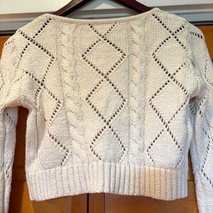 This is in great preowned condition. John Galt (Brandy Melville) 100% cotton cropped button down sweater cardigan. Cream colored, long sleeves, open knit cable and diamond design. It is a "one size fits most" but fits similar to a small. Please look at the measurements.