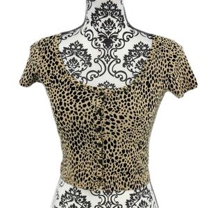 Channel effortlessly cool girl vibes in this John Galt by Brandy Melville cropped tee. Made in Italy from soft 100% cotton, this leopard print top features a scoop neckline and dainty front buttons for a touch of Y2K charm. Pair it with baggy jeans or a mini skirt for an easy, on-trend look.