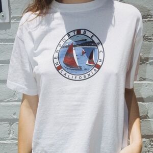 John Galt For Brandy Melville White Newport Beach California Short Sleeve Sailboat Graphic T-Shirt One Size