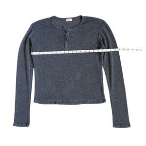 John Galt gray long sleeve shirt with button up neckline one size fits most