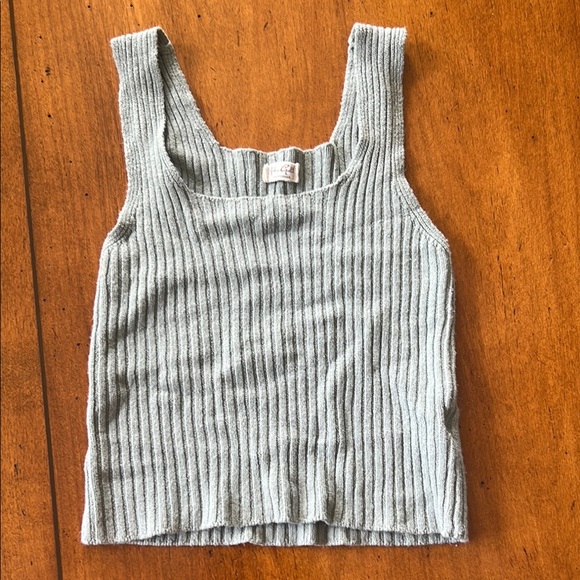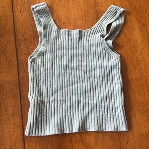 Stylish ribbed knit tank top in a soft gray color. Perfect for layering or wearing alone.