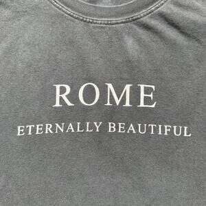 John Galt cropped tee featuring “ROME – Eternally Beautiful” graphic print across the chest in classic serif lettering. A minimalist travel-inspired graphic top perfect for everyday wear.
