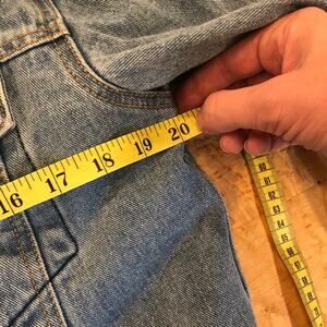 Great condition sherpa jean jacket. No size tag so please check the measurements in pictures. My guess is a small or small-to-medium. Warm and stylish, perfect 3 season jacket.