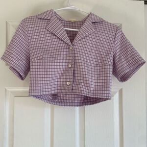 John Galt Size XS Brandy Melville Vivian Top Purple Plaid Preppy Collared Crop