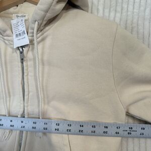 New with tags one size fits most I would say it fits like a small though please see measurements Reach for the Taupe Crystal Cropped Hoodie from John Galt for an instant warm-up. This cute hoodie has a drawcord hood, full zipper front closure with side pockets, and a cropped fit.