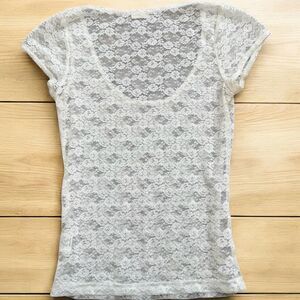 John Galt White Cream Lace Woven Top Shirt Knit Short Sheer Small S