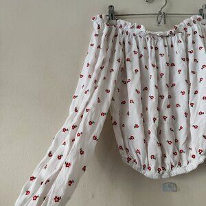 John Galt, floral top, off-shoulder, embroidered, white blouse, NWOT, casual, chic, feminine fashion