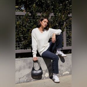 Details: Instantly elevate your basics collection with John Galt's White Ida Cable Knit Sweater. This super cozy sweater has a cable knit fabrication with long sleeves, a v-neckline, and ribbed trimming.