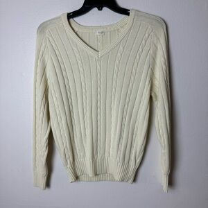 Details: Instantly elevate your basics collection with John Galt's White Ida Cable Knit Sweater. This super cozy sweater has a cable knit fabrication with long sleeves, a v-neckline, and ribbed trimming.