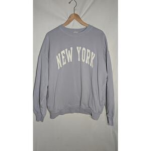 John Galt Womens Oversized New York Crewneck Sweatshirt One Size Blue Pockets