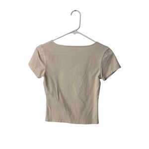 John Galt Womens Square Neck Beige T-Shirt 96% Cotton 4% Elastane Size S
