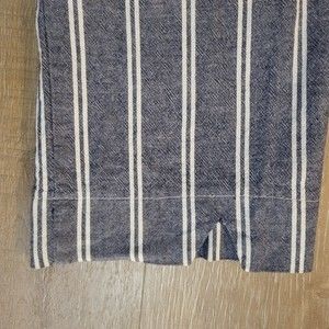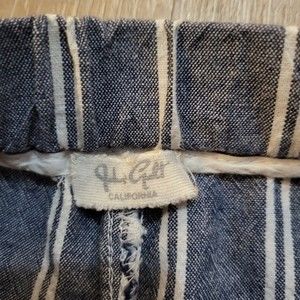 John Galt High Waist Blue & White Pin Stripe Pants. No Size but Im guessing a small. They do have an elastic waist band. Super comfortable. Would be great for everyday wear or on a tropical vacation.