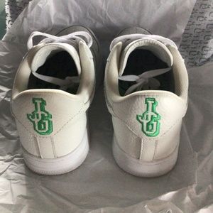 Only worn 2xs! New and in box. No marks or scratches. With additional green laces. White pebbled leather with green stitching JG on the back heel. Pittsburgh’s exclusive luxury sneaker designer gone global. Smoke free/Pet free home. Shoes come in Mens Sizing FYI!! Please know your shoe size.