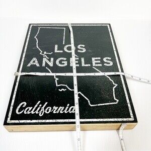 Featuring a distressed black back ground with outline of the state of California with Graphic Los Angeles, California in a Grey, White and Black Faux Granite. Stock photo shows a larger size as this art comes in different sizes.