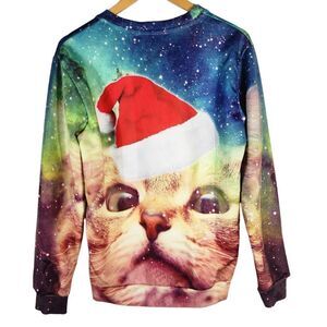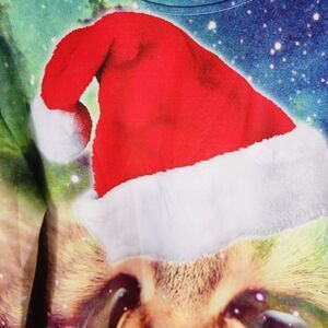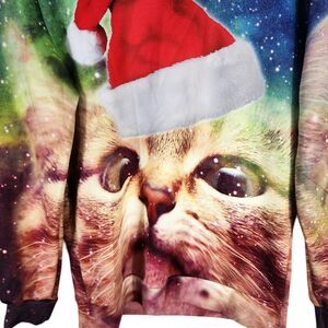 John Hancock Cat Santa Hat Christmas Sweater Sweatshirt Stars Size L