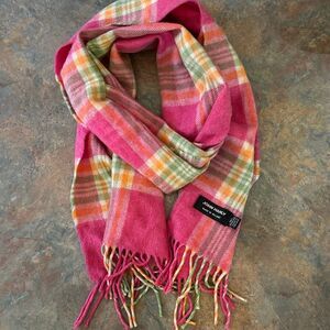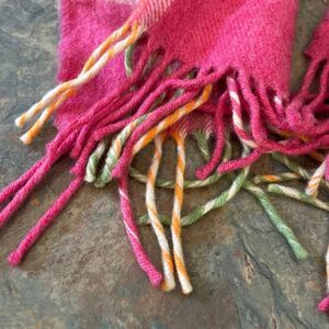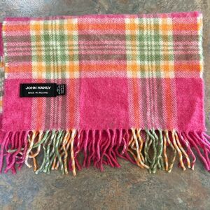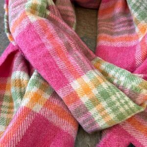 John Hanly Merino Wool Pink Orange Plaid Scarf. Unisex Ireland